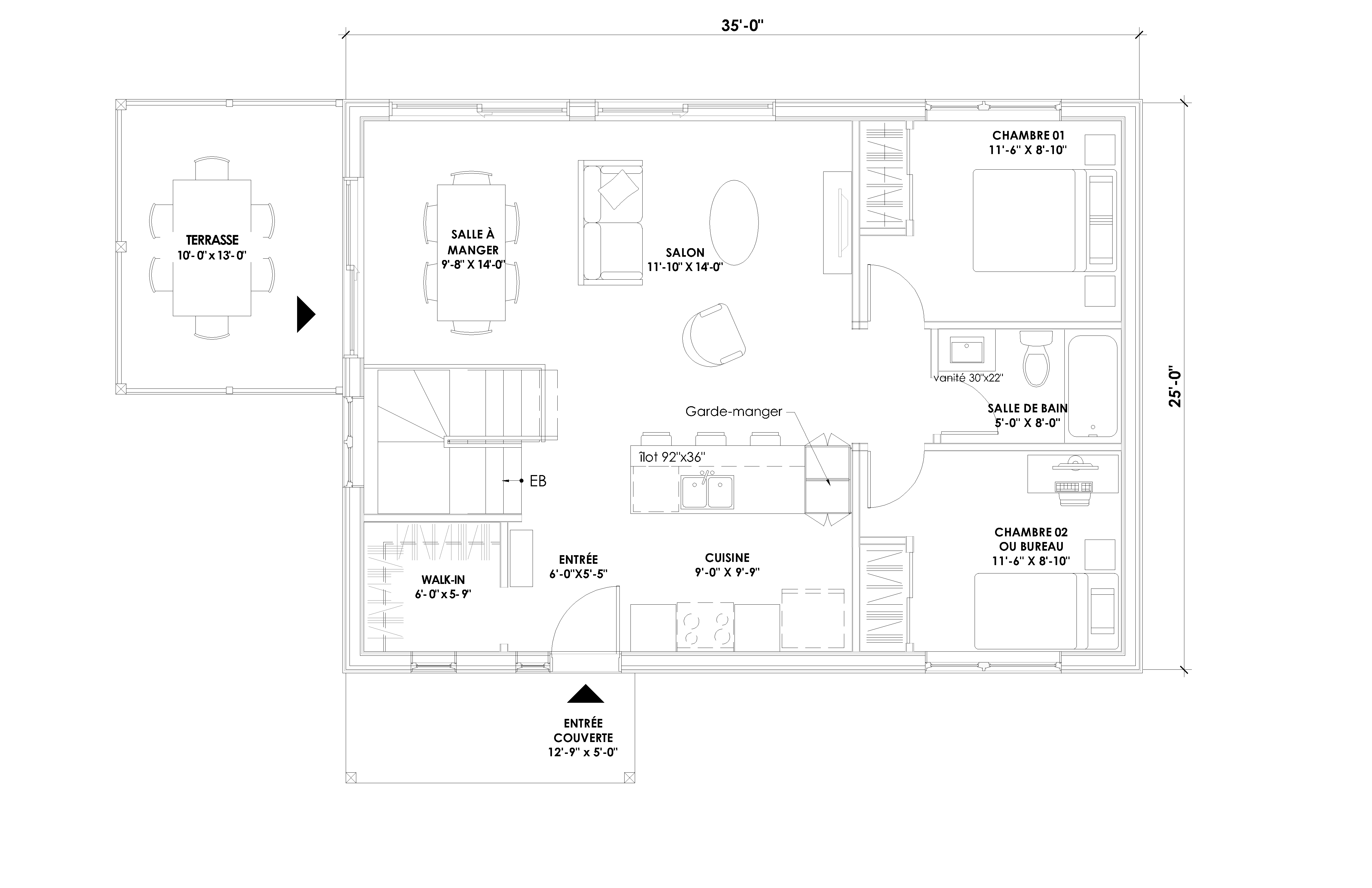 This 1750-square-foot model, with its two-bedroom, one-bathroom first floor and unfinished basement, is ideal for the whole family. Once finished, the basement will allow you to add three bedrooms and a bathroom for even greater comfort. Also available in a garden-level version, this home is an invitation to live in complete tranquility, in a modern, natural setting, perfect for blossoming to the rhythm of nature.