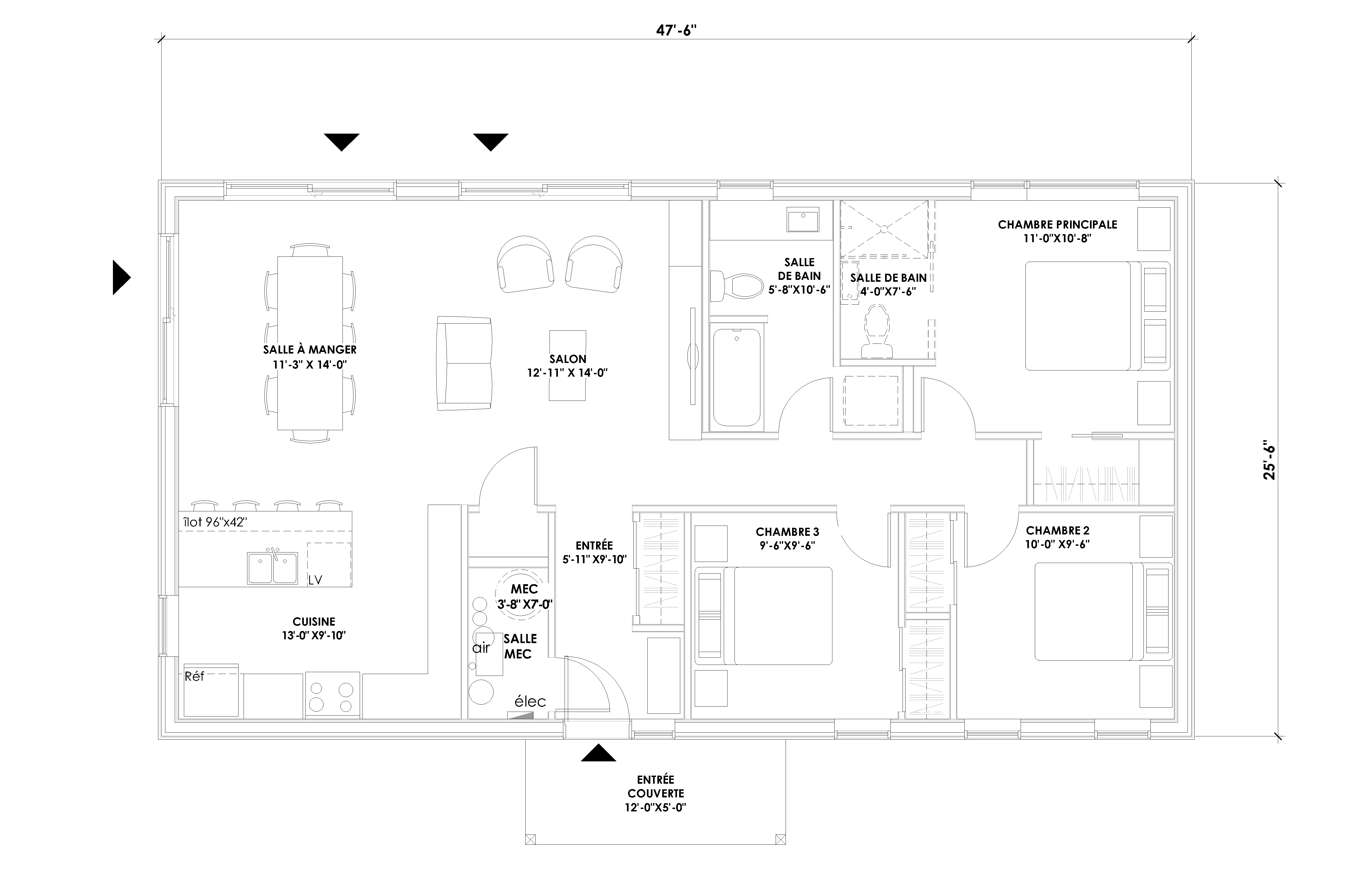 The ADA-3 model offers 1211 square feet and all the functionality of a one-storey home. You'll be charmed by its volumes and the layout of its rooms. This home features a beautiful living room that opens onto the kitchen and the outdoors, and offers plenty of light thanks to its large windows. The three bedrooms, one full bathroom and bright, comfortable living areas have been designed with you in mind. With its modern look, the ADA-3 is sure to please with its practicality and clean lines.