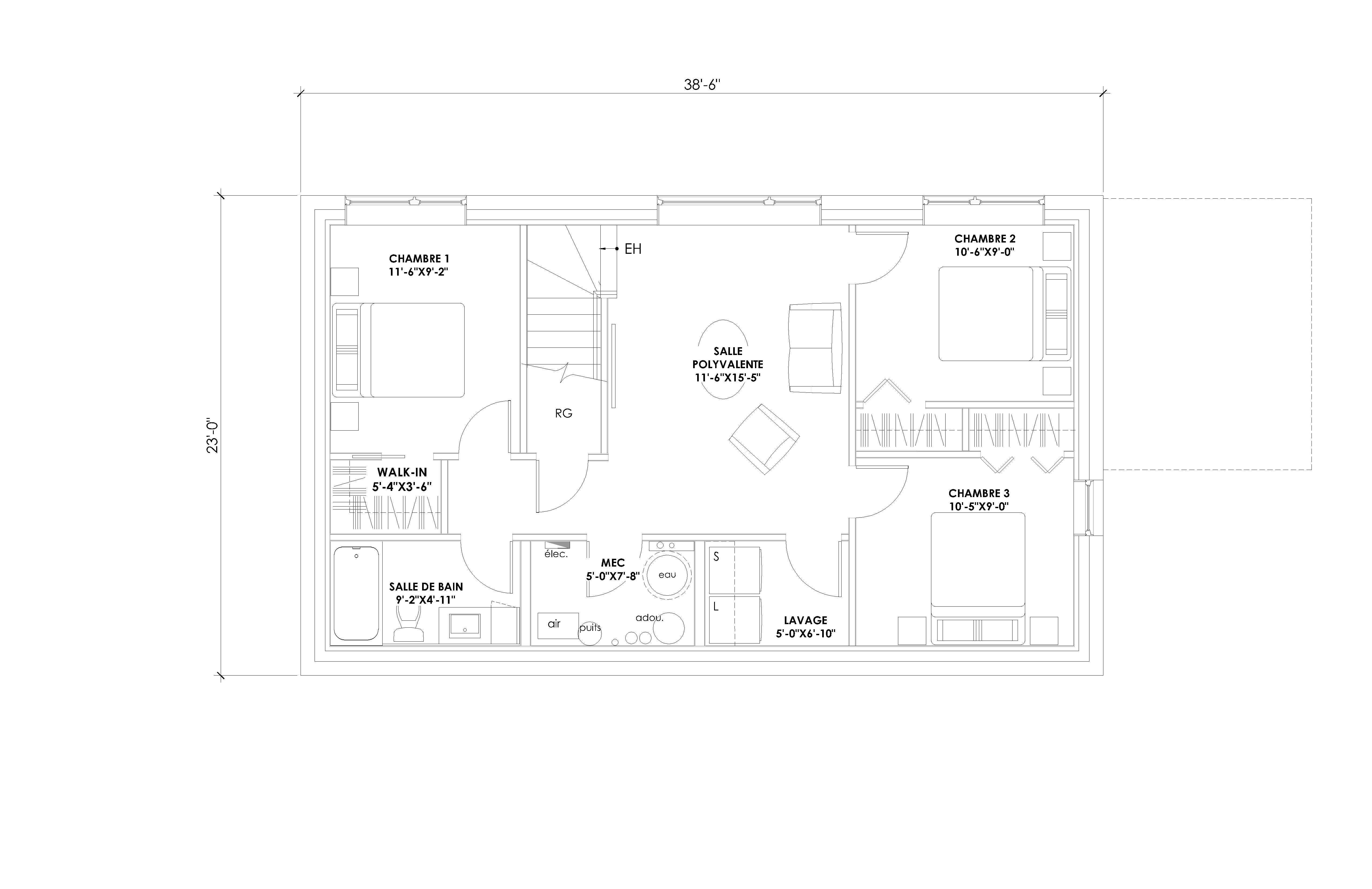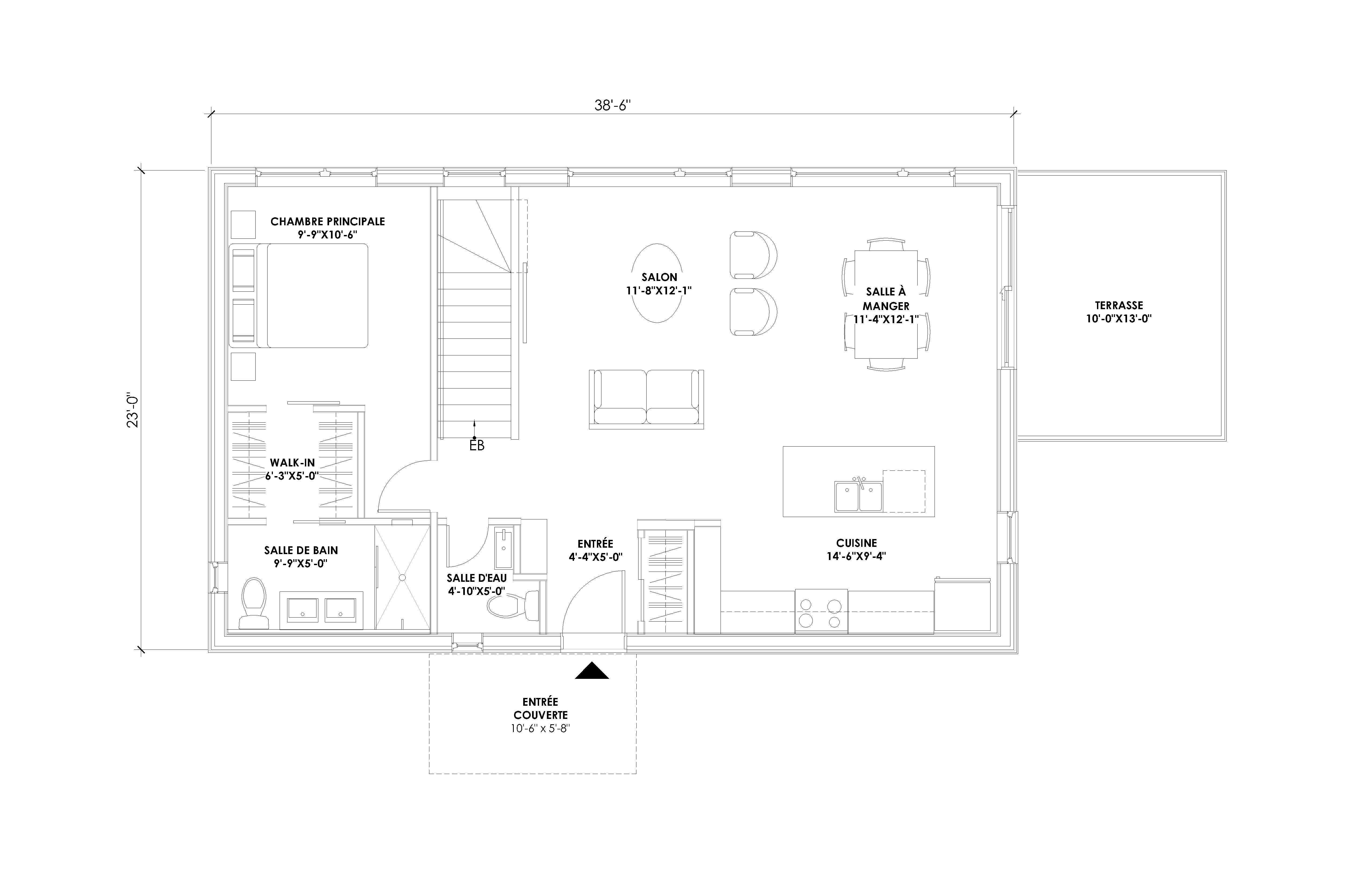 With its 1,772 square feet, divided between a basement and a first floor, ADA-4 is a modern home that invites you to live in a bright, well-imagined space. You'll find four bedrooms, two bathrooms, a powder room and a multi-purpose room. Generous windows and a covered terrace let you enjoy your surroundings whatever the season, creating a living space in perfect harmony with nature.