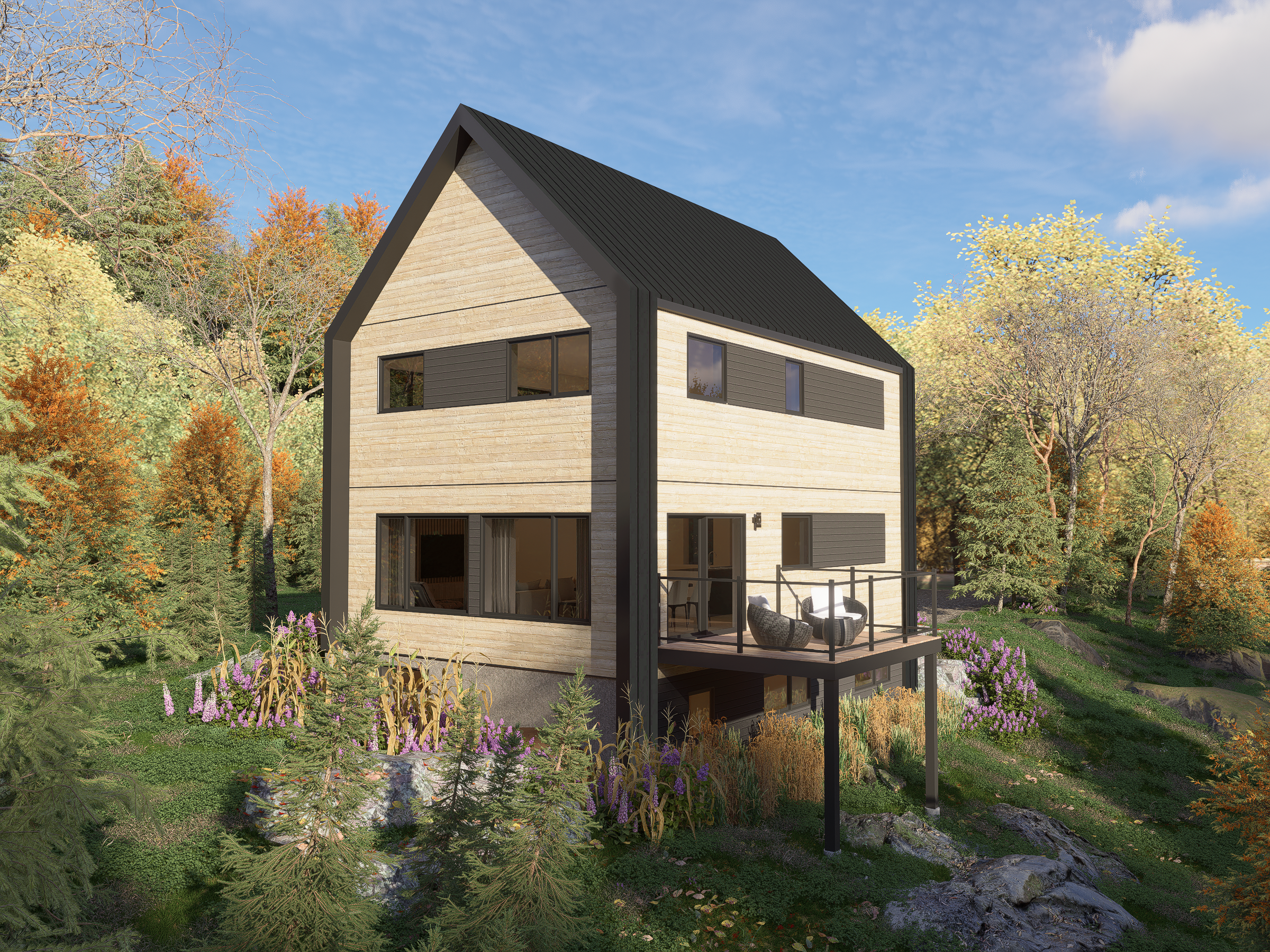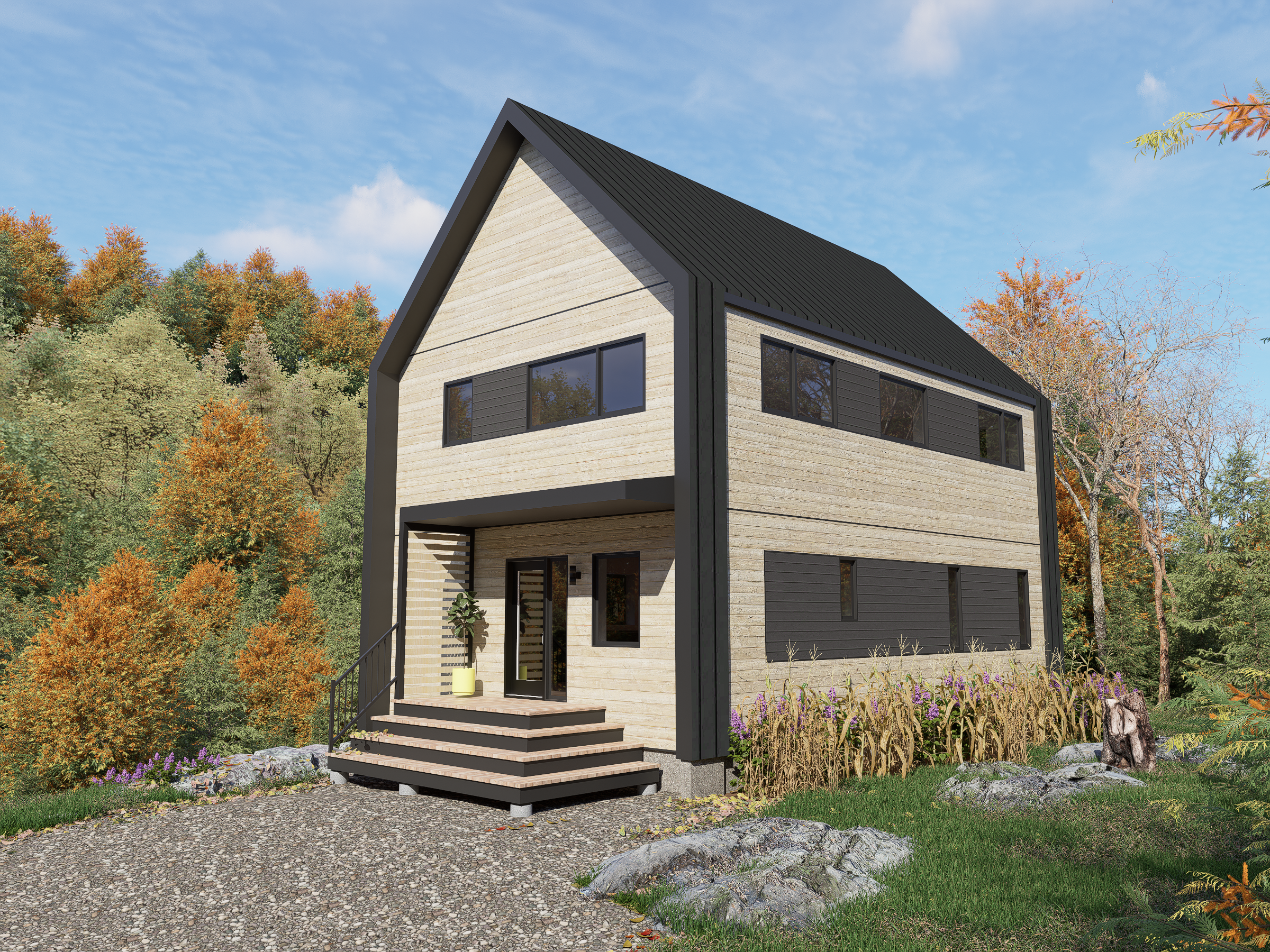 Avec son architecture scandinave épurée, ce plan offre 1520 pi² répartis sur deux niveaux, auxquels s’ajoute un sous-sol pensé pour être entièrement aménagé, portant la superficie totale à 2280 pi². Trois chambres, deux salles de bain et une salle d’eau composent un espace modulable et accueillant, prêt à évoluer au rythme de votre famille. Une invitation à adopter un mode de vie paisible, lumineux et ancré dans la nature.