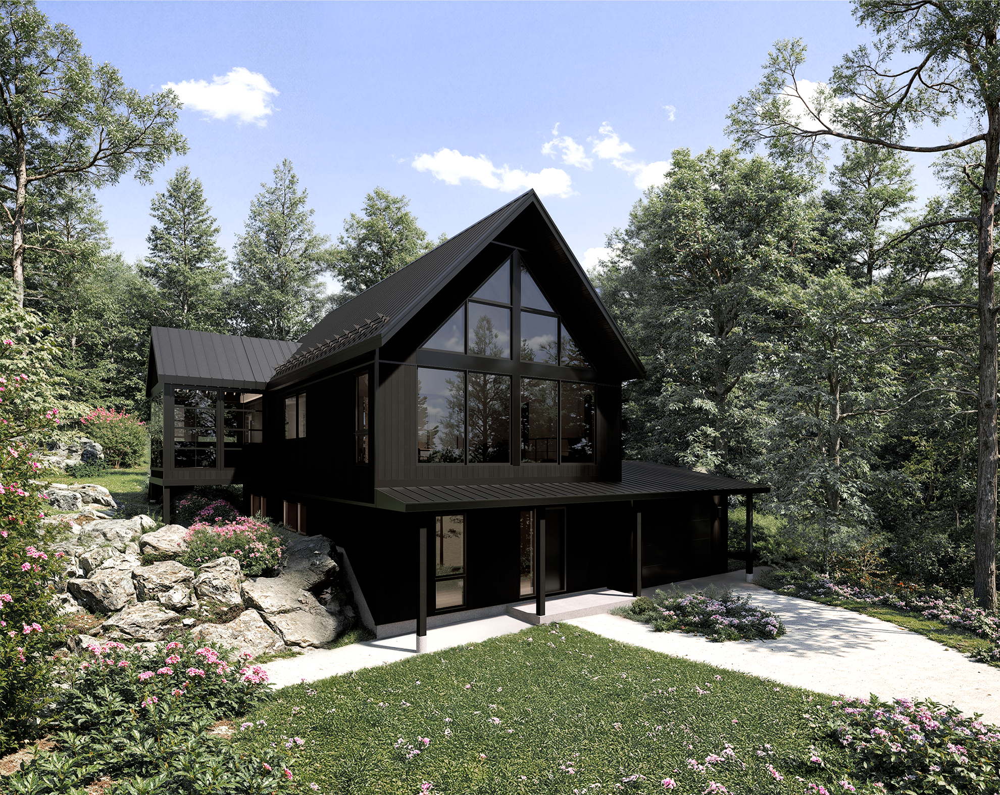 Déployé sur 2137 pieds carrés entre un rez-de-jardin et un rez-de-chaussée, ce modèle propose trois chambres, deux salles de bain et une salle d’eau dans un espace où tout circule naturellement. Les aires de vie généreuses s’ouvrent sur l’extérieur grâce à une fenestration abondante et une grande terrasse, pour savourer chaque saison en toute quiétude. Un coin bureau coiffé d’un plafond cathédrale et un garage intégré complètent l’ensemble, pour un quotidien aussi inspirant que pratique.